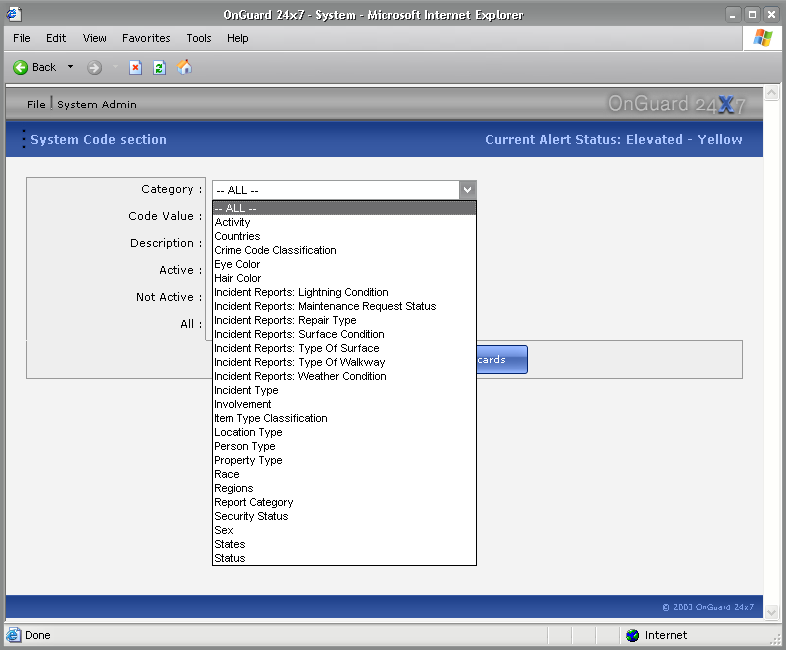 drop down lists in the data entry portion of the program.